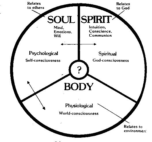 Using terms as tri-partite does not convey the whole essence of how we are ‘made’ and is too simplistic a model to describe the complexity of human. Each section is a motif to describe the functionality on a micro and then a macro level. On a micro level, the body consists of bones, flesh and blood. The bones give the body structure, whilst the flesh gives it mobility and flexibility and the blood give it life. Similarly, the soul of the individual can be defined as, the mind, the will and the emotion. The mind is the major part of the person while the will determine how the mind functions and the emotions are the outworking of the functionality. Finally, we can define the spirit of an individual as comprising; the conscience, connectivity to God and the intuition. Again, the conscience is the major part, whilst the connectivity to God and the intuition determines how the conscience functions.